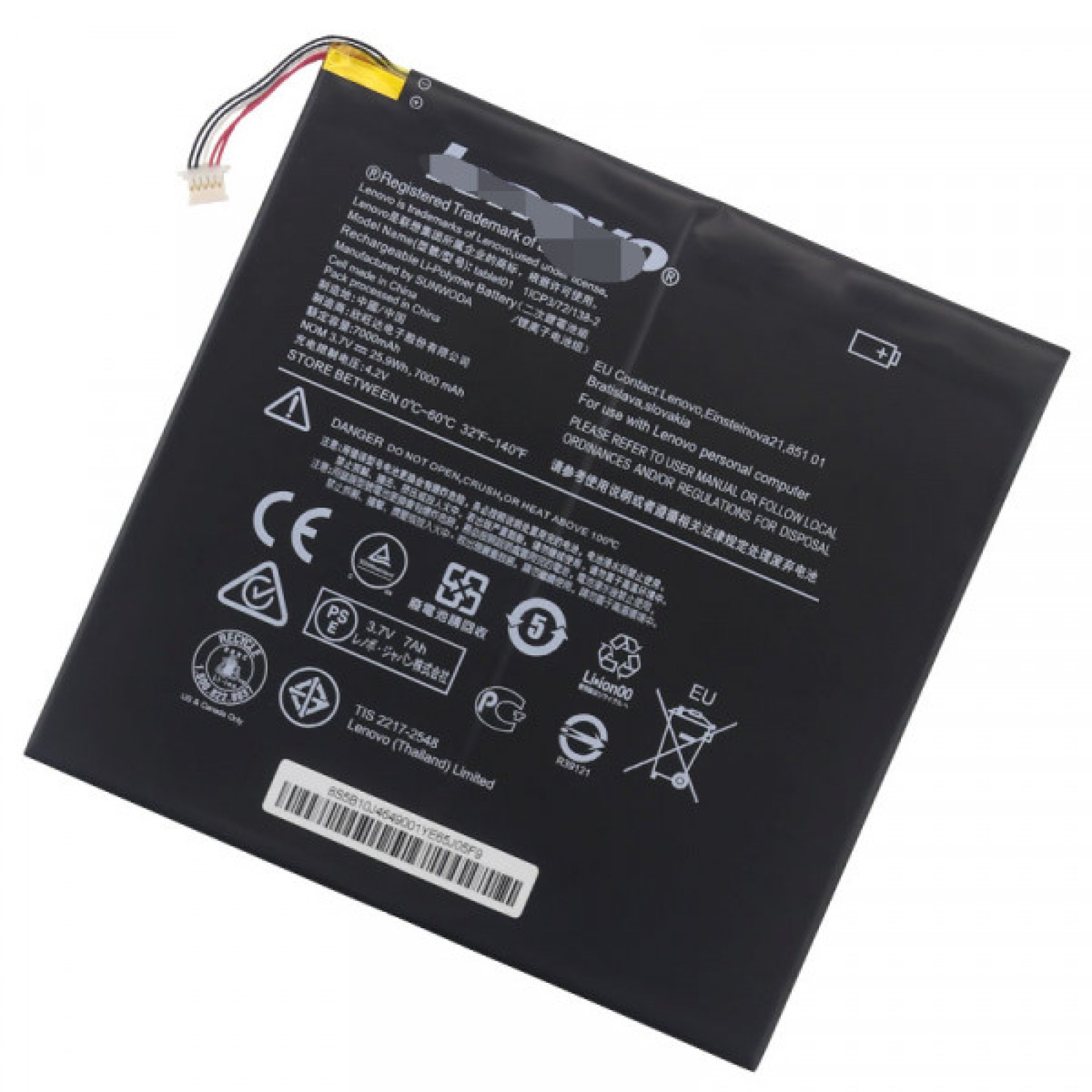 The battery is built for ultra-slim tablet devices where space and weight are limited. It uses a flat lithium-polymer structure designed to evenly distribute power across the Miix 300 chassis without affecting portability or screen alignment.